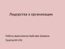 Лидерства в организации Работу выполнила Кайсова Шахина Группа