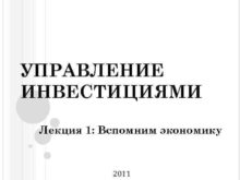 УПРАВЛЕНИЕ ИНВЕСТИЦИЯМИ Лекция 1 Вспомним экономику 2011