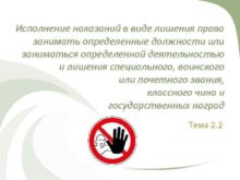 Исполнение наказаний в виде лишения права занимать определенные