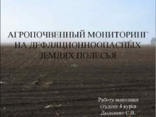 АГРОПОЧВЕННЫЙ МОНИТОРИНГ НА ДЕФЛЯЦИОННООПАСНЫХ ЗЕМЛЯХ ПОЛЕСЬЯ Работу выполнил