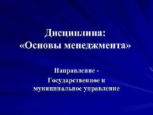 Дисциплина Основы менеджмента Направление Государственное и муниципальное управление