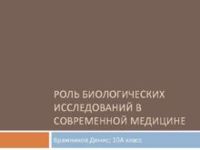 РОЛЬ БИОЛОГИЧЕСКИХ ИССЛЕДОВАНИЙ В СОВРЕМЕННОЙ МЕДИЦИНЕ Бражников Денис