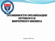 ОСОБЕННОСТИ ОРГАНИЗАЦИИ КРУПНОГО И ВЕНЧУРНОГО БИЗНЕСА Алматы 2016