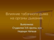Влияние табачного дыма на органы дыхания Выполнила Студентка
