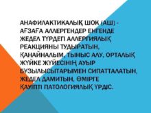 АНАФИЛАКТИКАЛЫҚ ШОК АШ АҒЗАҒА АЛЛЕРГЕНДЕР ЕНГЕНДЕ ЖЕДЕЛ ТҮРДЕГІ