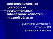 Дифференциальная диагностика воспалительных заболеваний челюстнолицевой области Выполнила Саутбекова