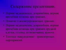 Содержание презентации Первая медицинская доврачебная первая врачебная