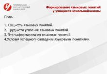 Формирование языковых понятий у учащихся начальной школы План