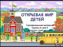 ОТКРЫВАЯ МИР ДЕТЕЙ Сертификационная программа Уровень IV урок