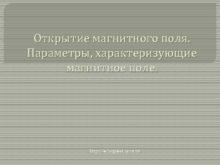 Открытие магнитного поля Параметры характеризующие магнитное поле http