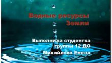 Водные ресурсы Земли Выполнила студентка группы 12 ДО