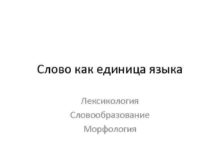 Слово как единица языка Лексикология Словообразование Морфология