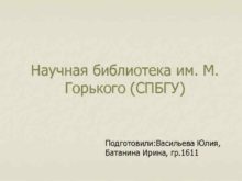 Научная библиотека им М Горького СПБГУ Подготовили Васильева