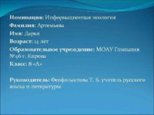 Номинация Информационная экология Фамилия Артемьева Имя Дарья Возраст