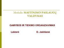 Modulis MAITINIMO PASLAUGŲ VALDYMAS GAMYBOS IR TIEKIMO ORGANIZAVIMAS