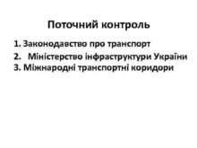 Поточний контроль 1 Законодавство про транспорт 2 Міністерство