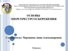 ОСНОВЫ ЭНЕРГОРЕСУРСОСБЕРЕЖЕНИЯ Составитель Черенцова Анна Александровна Хабаровск