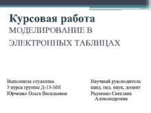 Курсовая работа МОДЕЛИРОВАНИЕ В ЭЛЕКТРОННЫХ ТАБЛИЦАХ Выполнила студентка