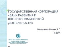 ГОСУДАРСТВЕННАЯ КОРПОРАЦИЯ БАНК РАЗВИТИЯ И ВНЕШЭКОНОМИЧЕСКОЙ ДЕЯТЕЛЬНОСТИ Выполнила