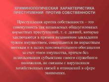КРИМИНОЛОГИЧЕСКАЯ ХАРАКТЕРИСТИКА ПРЕСТУПЛЕНИЙ ПРОТИВ СОБСТВЕННОСТИ Преступления против собственности
