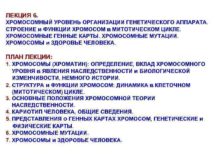 ЛЕКЦИЯ 6 ХРОМОСОМНЫЙ УРОВЕНЬ ОРГАНИЗАЦИИ ГЕНЕТИЧЕСКОГО АППАРАТА СТРОЕНИЕ
