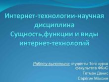 Интернет-технологии-научная дисциплина Сущность функции и виды интернет-технологий Работу