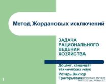 Метод Жордановых исключений ЗАДАЧА РАЦИОНАЛЬНОГО ВЕДЕНИЯ ХОЗЯЙСТВА 1