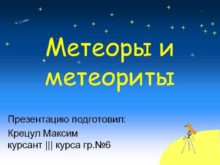Метеоры и метеориты Презентацию подготовил Крецул Максим курсант