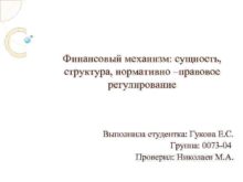 Финансовый механизм сущность структура нормативно правовое регулирование Выполнила