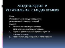МЕЖДУНАРОДНАЯ И РЕГИОНАЛЬНАЯ СТАНДАРТИЗАЦИЯ Цель Ознакомиться с международной