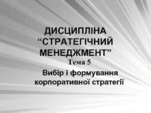 ДИСЦИПЛІНА СТРАТЕГІЧНИЙ МЕНЕДЖМЕНТ Тема 5 Вибір і формування