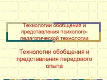 Технологии обобщения и представления психологопедагогической технологии Технологии обобщения