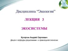 Дисциплина Экология ЛЕКЦИЯ 3 ЭКОСИСТЕМЫ Кутергин Андрей Сергеевич