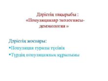 Дәрістің тақырыбы Популяциялар экологиясыдемэкология Дәрістің жоспары