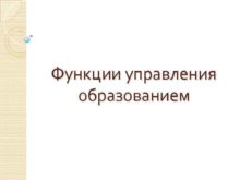 Функции управления образованием Функция управления это