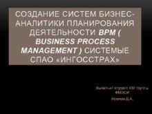 СОЗДАНИЕ СИСТЕМ БИЗНЕСАНАЛИТИКИ ПЛАНИРОВАНИЯ ДЕЯТЕЛЬНОСТИ BPM ДЕЯТЕЛЬНОСТИ