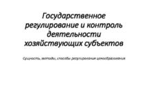 Государственное регулирование и контроль деятельности хозяйствующих субъектов Сущность