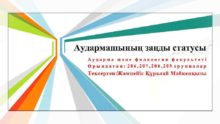 Аудармашының заңды статусы Аударма және филология факультеті О