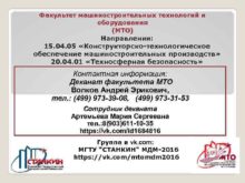 Факультет машиностроительных технологий и оборудования МТО Направления 15