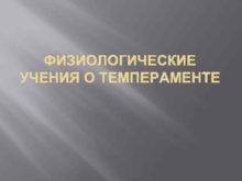 ФИЗИОЛОГИЧЕСКИЕ УЧЕНИЯ О ТЕМПЕРАМЕНТЕ Понятие о темпераменте