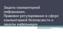 Защита компьютерной информации Правовое регулирование в сфере компьютерной