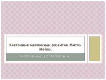 Клеточные механизмы развития Митоз Мейоз ВЫПОЛНИЛА КОБЯКОВА М