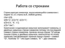 Работа со строками Строка-массив символов заканчивающийся символом с