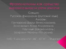 Фразеологизмы как средство выразительности речи учителя Секция Русская