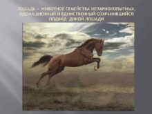 ЛОШАДЬ ЖИВОТНОЕ СЕМЕЙСТВА НЕПАРНОКОПЫТНЫХ ОДОМАШНЕННЫЙ И ЕДИНСТВЕННЫЙ