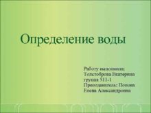 Определение воды Работу выполнила Толстоброва Екатерина группа 511