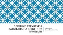 ВЛИЯНИЕ СТРУКТУРЫ КАПИТАЛА НА ВЕЛИЧИНУ ПРИБЫЛИ Подготовили Спирин