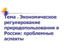 Тема Экономическое регулирование природопользования в России проблемные аспекты