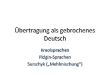 Übertragung als gebrochenes Deutsch Kreolsprachen Pidgin-Sprachen Surschyk Mehlmischung