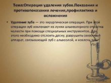 Тема Операция удаления зубов Показания и противопоказания лечения